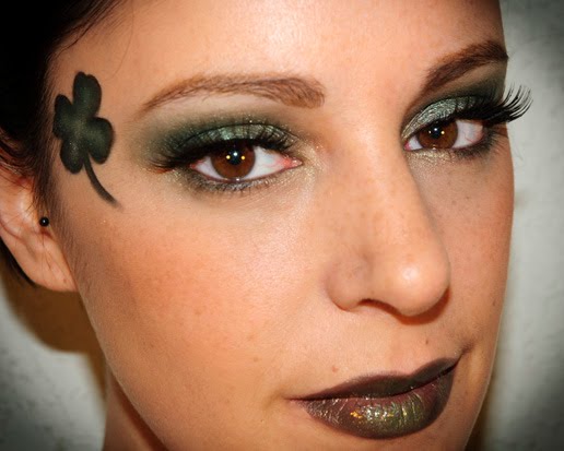 Hola a tod@s, hoy os traigo un look que me habéis pedido mucho, y es un look inspirado en el día de Sant Patrick, y como tal el look es básicamente en tonos verdes, con un adornode un trebol en uno de los laterales de la cara, es un look muy atrevido con los labios verdes pero doy otra posibilidad menos atrevida con unos labios nude, espero que os guste, y hasta la próxima,