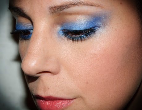 Fluor blue and darker blue eyeshadow from the duo eyeshadow palette Pinaud Mini Doble Ombre 01.