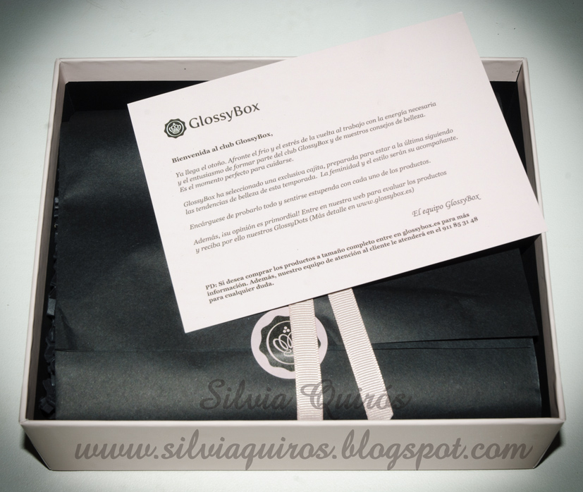 Al abrirla lo primero que encontramos es una nota de agradecimiento del grupo GlossyBox.
