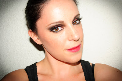 Hola a tod@s, hoy os traigo un look muy intenso, un ahumado en negro con un toque en rojizo muy bonito y provocativo. Para acompañar he añadido unos labios tipo vampirico que dan un efecto muy atractivo. Espero que os guste,