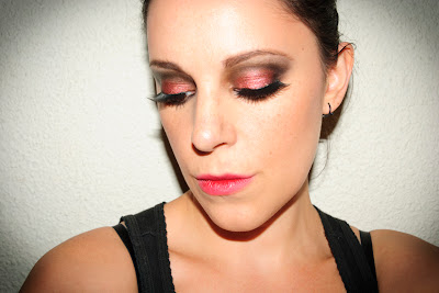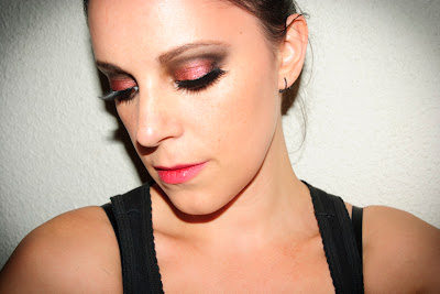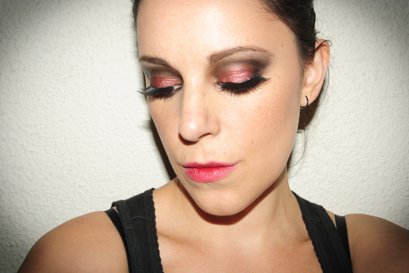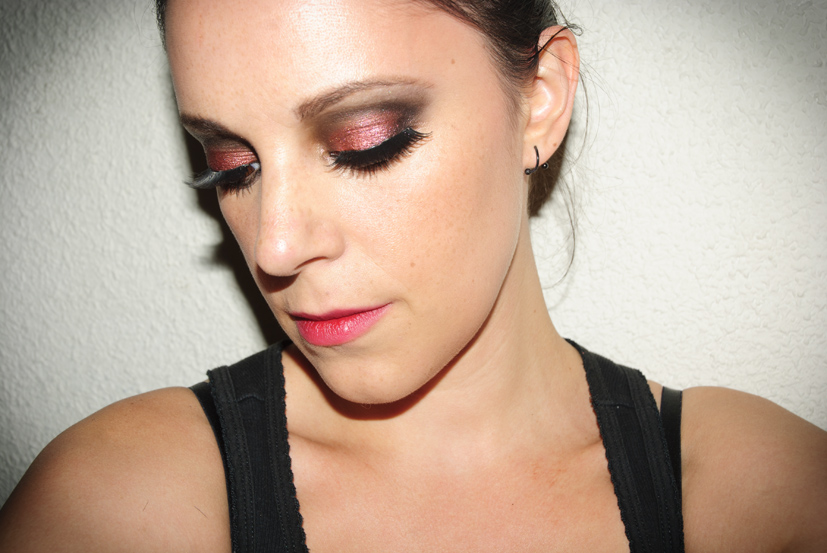 Hola a tod@s, hoy os traigo un look muy intenso, un ahumado en negro con un toque en rojizo muy bonito y provocativo. Para acompañar he añadido unos labios tipo vampirico que dan un efecto muy atractivo. Espero que os guste,