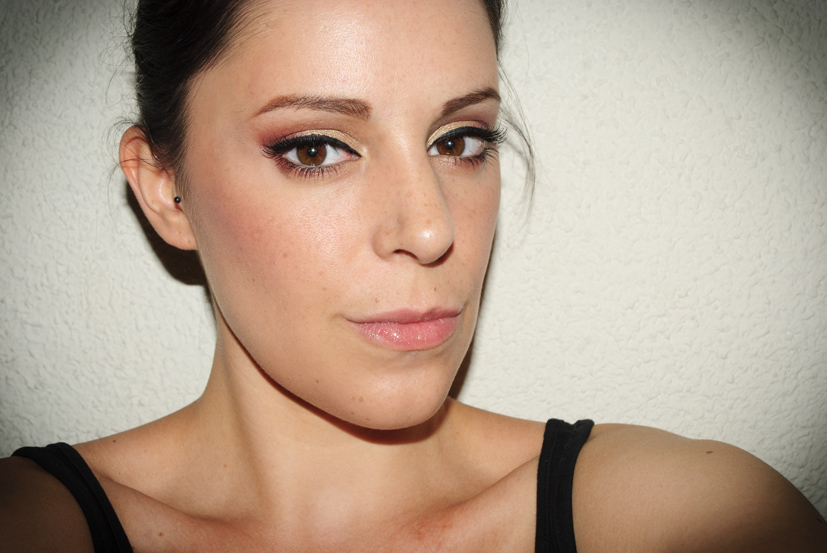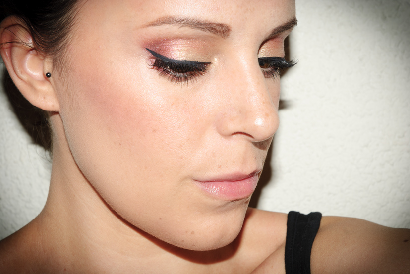 Hola a tod@s, hoy os traigo un look en tonos dorados y rosas marcando un eyeliner bien intenso. Espero que os guste.