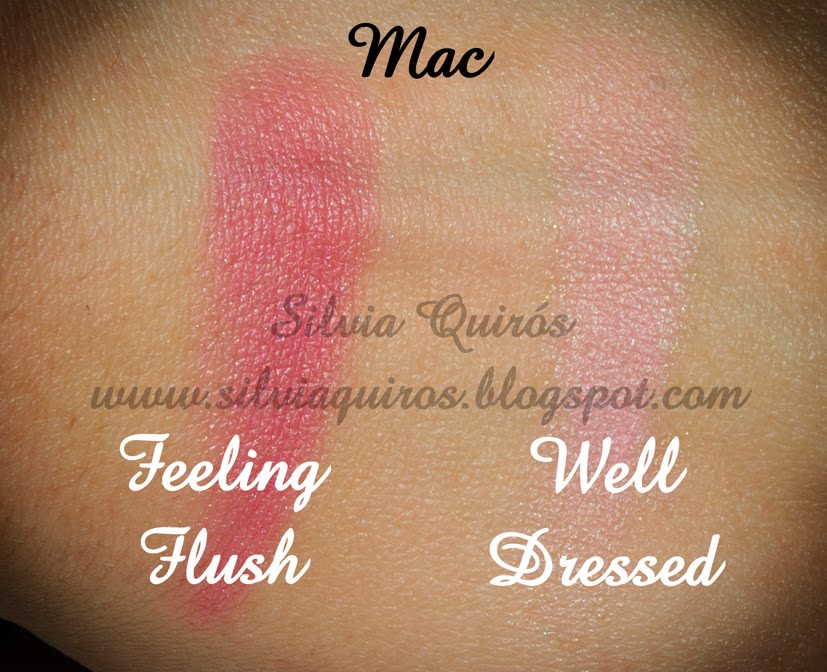I only have two Mac blushes, a compact blush and a mineral blush. The compact blush is the classic Well Dressed, a very fresh and natural pink. And the mineral blush is Feeling Flush a much stronger pink very well pigmented that needs a lit of attention when applying it.