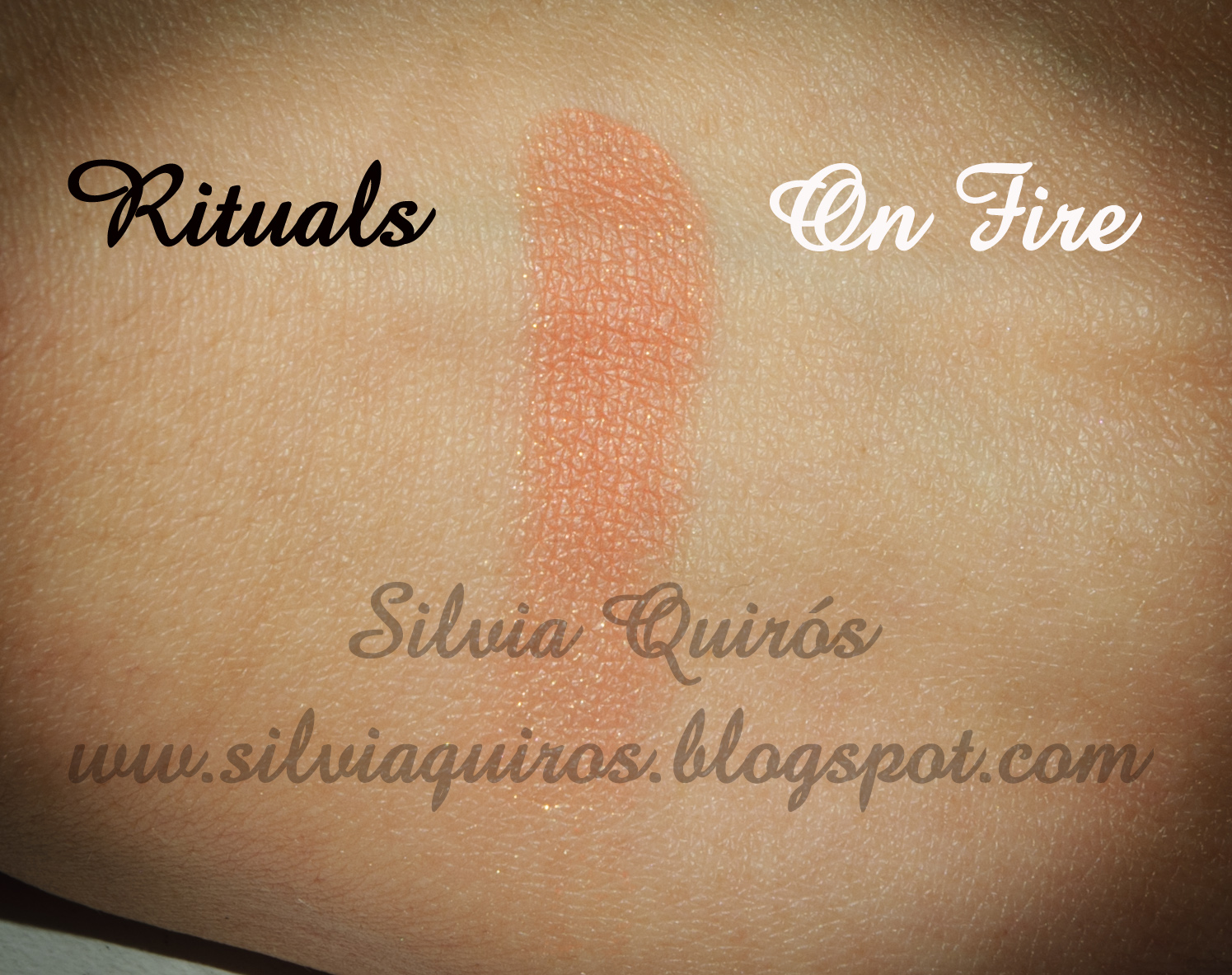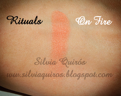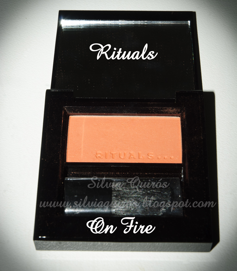 Este colorete de Rituals está super pigmentado y tiene un acabado en naranja fuego muy especial, es muy intenso y hay que tener cuidado a la hora de aplicarlo, pero nos quedará un toque fresco y especial al rostro.
