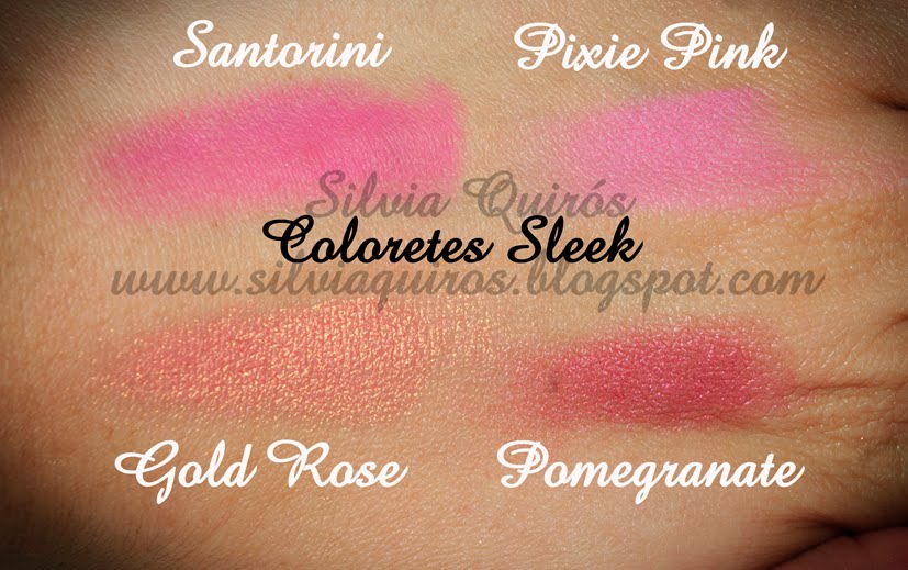Tengo cuatro tonos de los coloretes de Sleek, dos tonos mate y dos tonos con shimmer. Los tonos mate son dos rosados, Santorini de la colección de Mediterranean y Pixie Pink de la colección permanente, los dos super pigmentados los dos hay que tener cuidado al aplicarlo pero sobre todo Santorini.