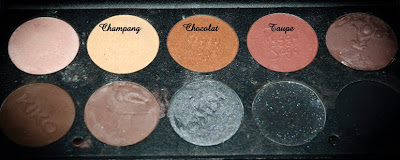 Champang es un tono dorado muy claro con acabado satinado muy bonito. Chocolat es un color bronce con un acabado dorado, sombra shimmer. Taupe un color marrón rojizo con un pequeño toque satinado.