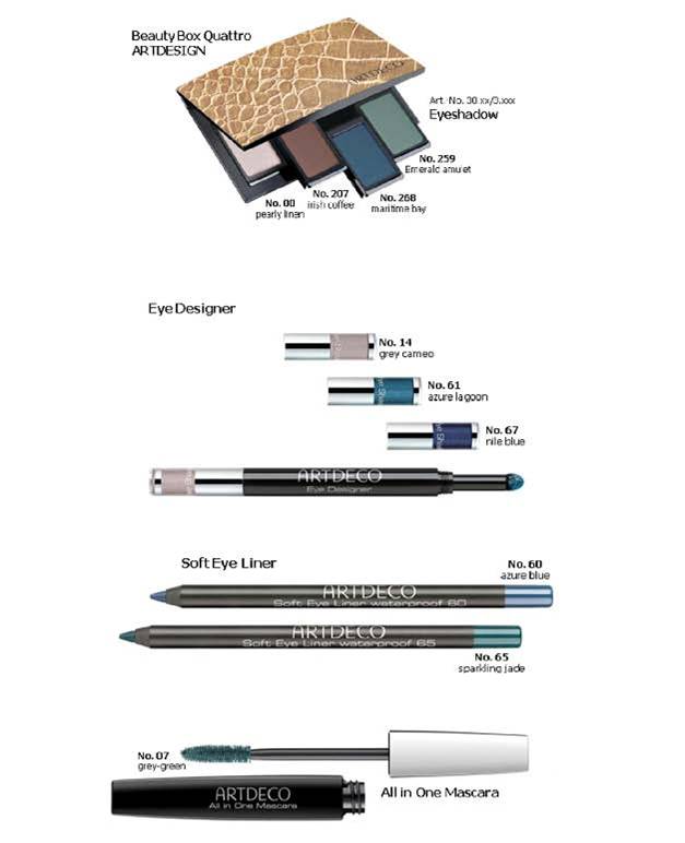 Esta temporada aliate a los colores fuertes para crear una mirada intensa y felina. El Beauty Box Cuattro con animal print, nos acompañará a todos los sitios por su tamaño y manejabilidad, nos permite cambiar las sombras o añadir el colorete y poder añadir un pequeño pincel. Diferentes tonos de azules, verdes, grises o marrones son los colores estrella.
