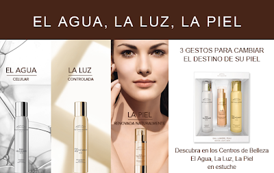 El agua, la luz, la piel. Una trilogía única en estuche. Para todas las mujeres, de cualquier edad, cualquiera que sea el entorno medioambiental, que desean recobrar su belleza original.