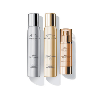 The Water, The light, The skin, 3 unique gestures to change the destiny of your skin. This trio allow your skin to: 1 with E.V.E. serum source, the skin, seft-regenator. 2 with UVin Cellium spray, the sun, self-protector. 3 with Cellular water spray, the water, self-vitalize.