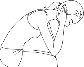 1. Sit, put you elbows on top of your knees having your feet on the floor. Set your forehead on the plams of your hands relaxing the neck muscles. Keep this position 10 secons.