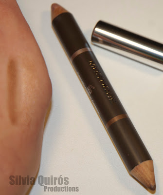 The highlighter pencil, has three times thicker the tip, it has a beige pink tone with a gold shimmer gorgeous finish. It has a very creamy texture and it can be blend very easy.