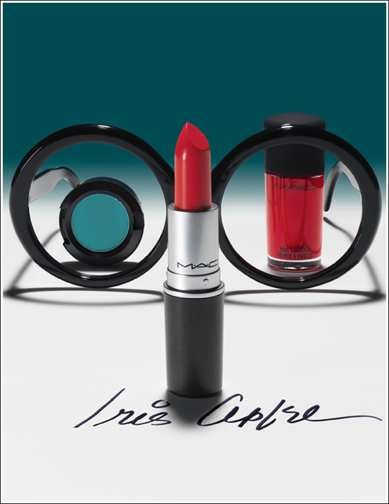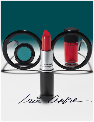 Está es la primera colección que Mac ha sacado este 2012, una colección muy especial inspirada en Iris Apfel una mujer de 90 años, diseñadora de interiores y toda una institución de la moda en Estados Unidos y así estan proclamando que la arruga es bella.