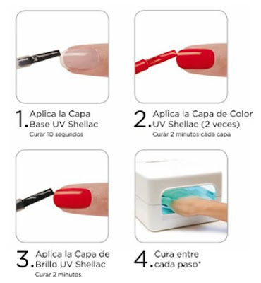 El proceso es muy sencillo, se empieza aplicando una capa base que después de 10 segundos en la lampara UV estará seca. Añadimos las capas de color que entre cada capa dejaremos las uñas secar en la lampara UV durante 2 minutos. Y por último añadiremos la capa final que también se deja durante 10 segundos en la lampara UV y listo! así de fácil y de rápido.