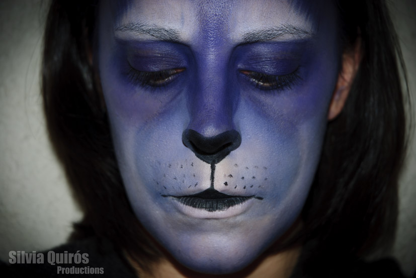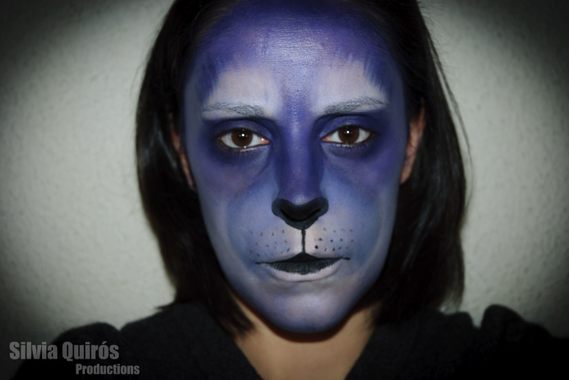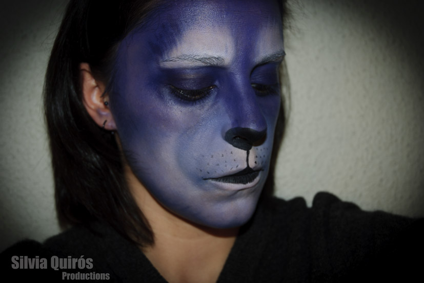 As always in animal make-up it all based in light and shadows, but this time I played with colors so I changed black or gray to a purple blue tone much more carnival type.