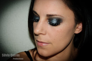 Un ahumado entre negro y plata con un toque muy especial en las pestañas postizas.