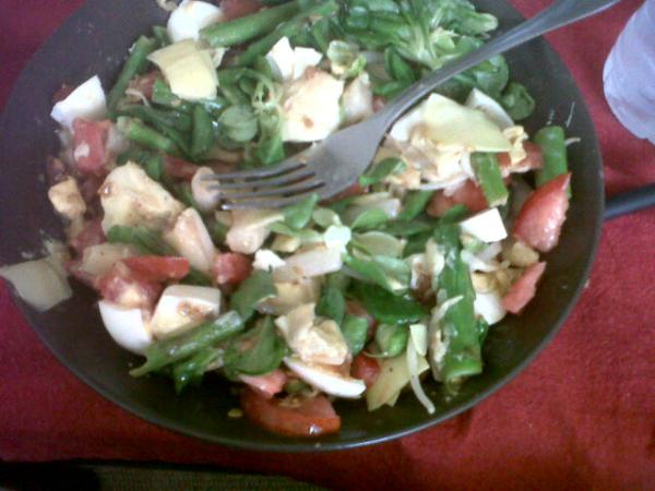 *Ensalada tibia con espárragos, alcachofa y huevo.