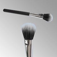 And then take a foundation brush, not compact brush, more soft and loose bristles, not the typical flat foundation brush, it has to be soft and loose.