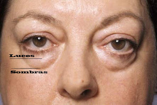 Como podéis ver en esta foto cuando se tienen bolsas debajo de los ojos se tiene una zona hinchada debajo de los ojos y cuando esto ocurre cambian las luces y las sombras, cambia la proyección de la luz en esta zona, creando una zona más brillante, luminosa y más clarita en la zona más hinchada y una zona más oscura con sombra justo en el borde debajo de la bolsa.