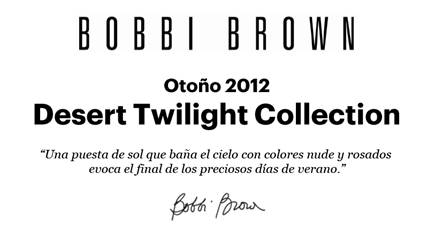 Así nos presenta Bobbi Brown su nueva colección de otoño 2012, Desert Twilight Collection, una colección con tonos nude y rosados y unas lacas de uñas muy especiales y llamativas para contrastar el resto del look.
