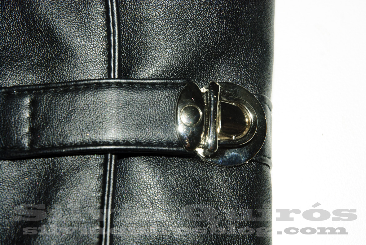 Y como cierre tiene un sistema metálico de click que mantiene bien firme cerrada la manta, me gusta porque no es de atar, no es de velcro, que no me gusta nada porque termina super sucio, y no tiene peligro de pegarte pillizquitos como en otras mancas que si ocurre.