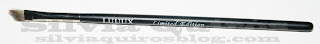 Un pincel angulado sintético bastante fino, con lo que se define como pincel de eyeliner, y al ser tan fino podemos hacer eyeliners con más definición, por ahora después de varias semanas de usarlo no he notado que las cerdas se abran, que es cuando estropea un pincel angulado sintético de eyeliner.