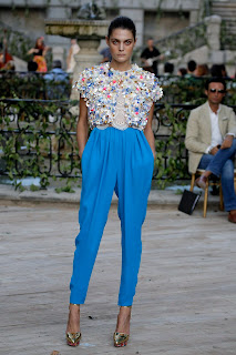 Los blancos, rosas y nude conviven con los intensos azules, corales y amarillos. Toques de flúor y dorados aportan ritmo y frescura al tul de seda y gasa.