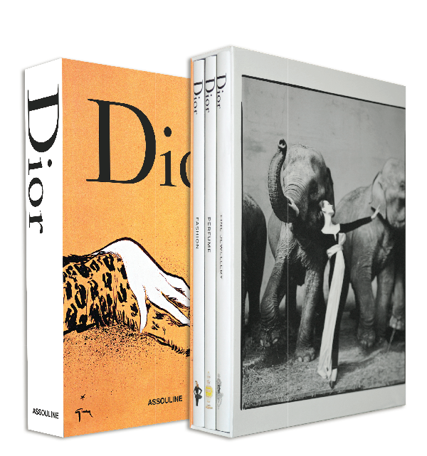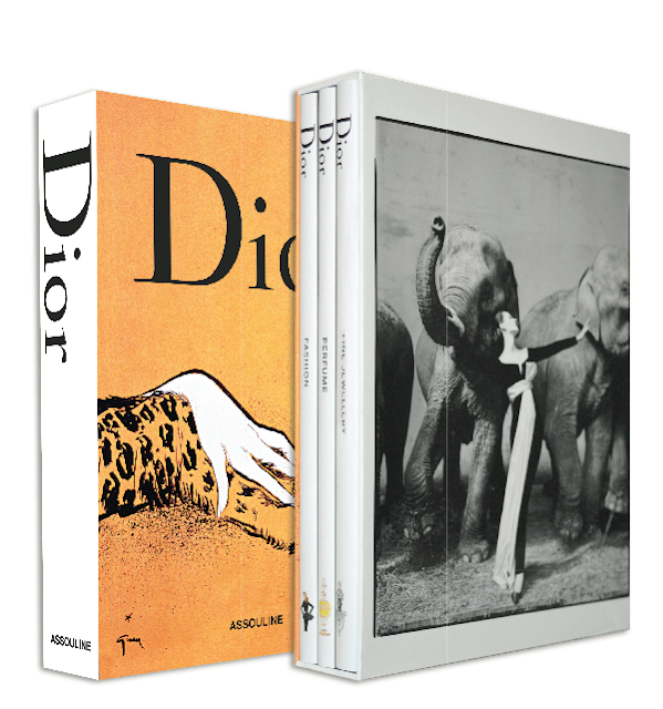 Estos tres libros Dior Fashion, Dior Jewellery y Dior Perfume con fotos de Assouline Dior más representativas de la época dorada de la firma.