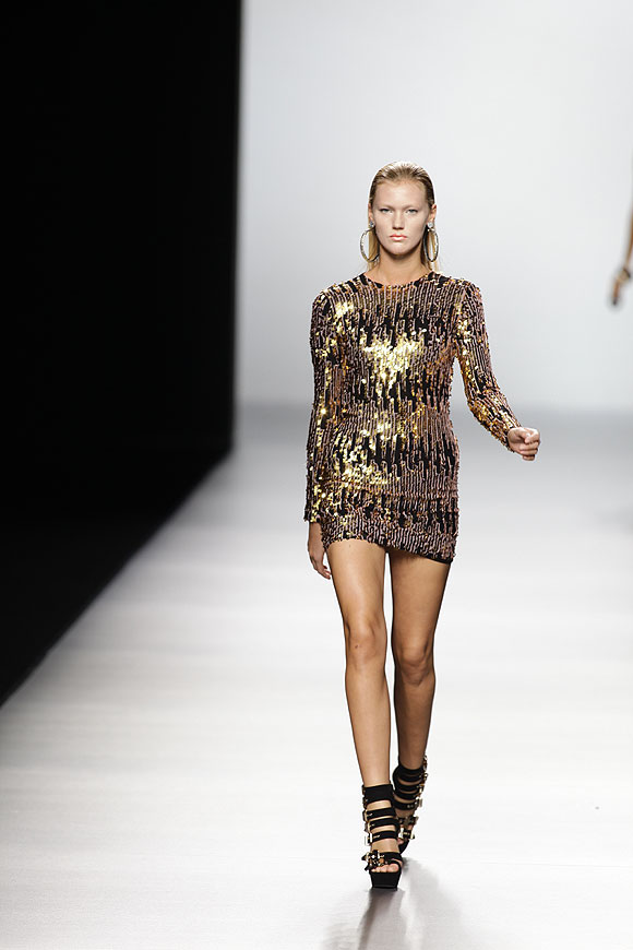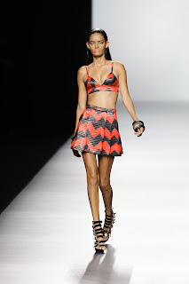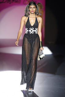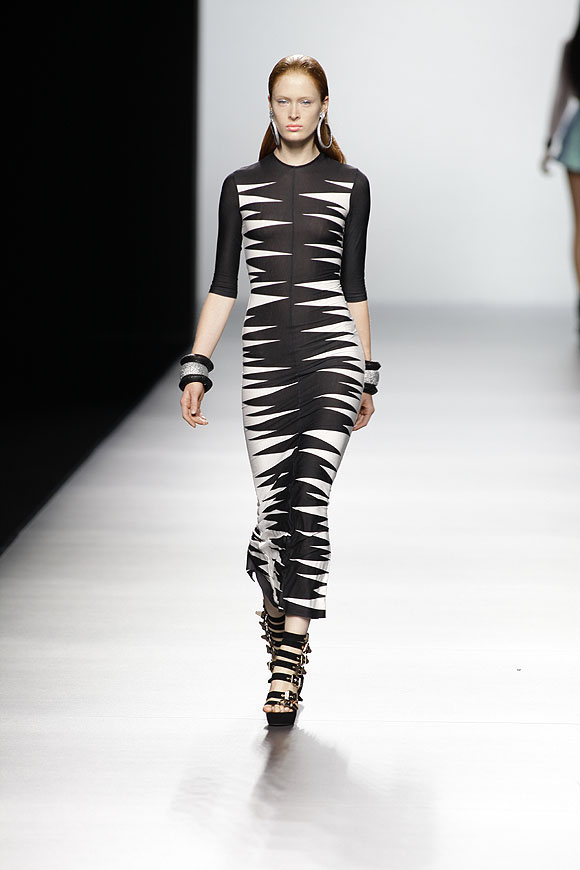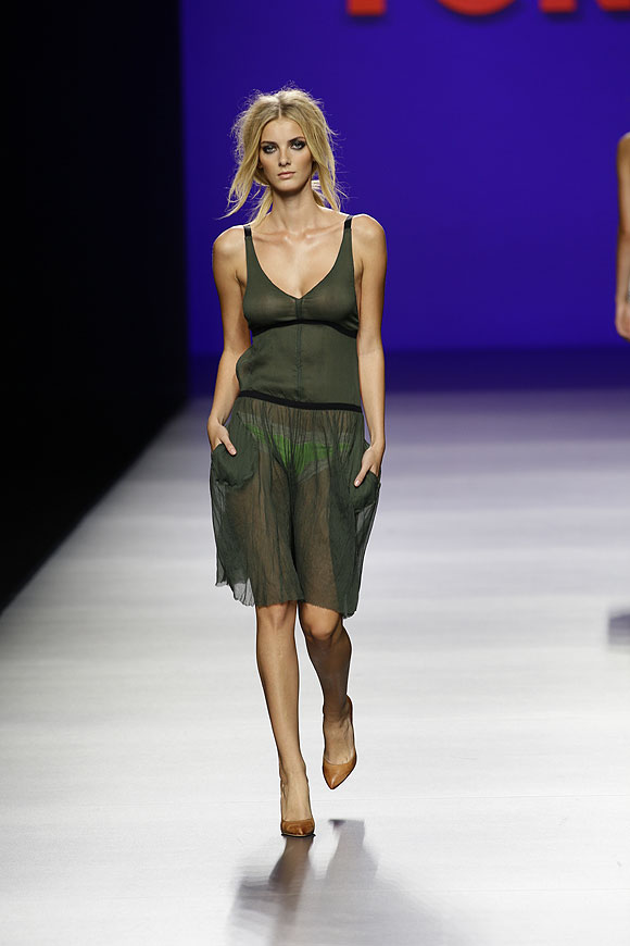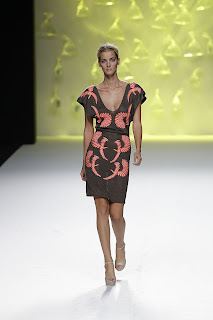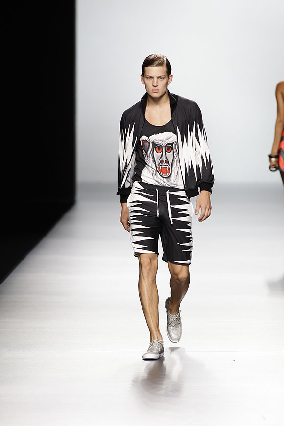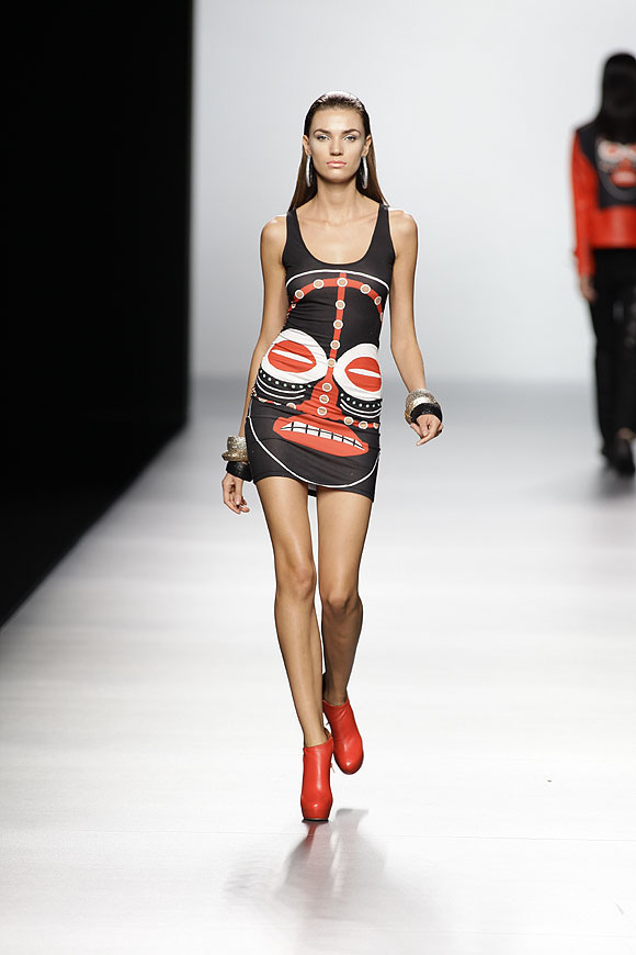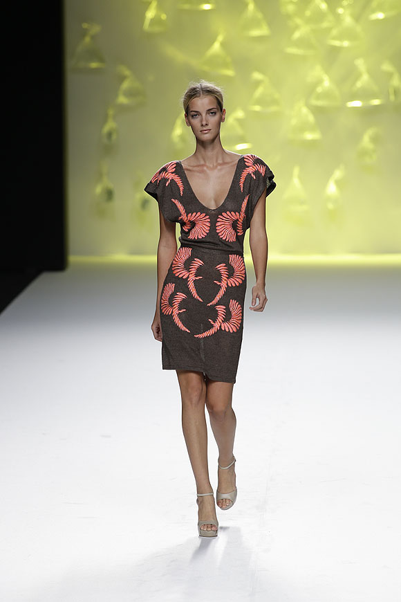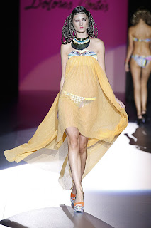Dolores Cortés como todos los años es una de las referencias clave de la ropa de baño para la próxima temporada, y en esta primavera/verano 2012/2013 nos trae una colección con inspiración étnica, los dibujos y gráficos ancestrales han sido su mayor inspiración y lo ha plasmado en su colección dandole todo el protagonismo. Las líneas muy limpias de corte con formas muy femeninas en los bikinis, bañadores y triquinis son acompañadas por vaporosas túnicas con detalles de aplicaciones metálicas. El punto llamativo lo dan los colores más vivos de los estampados étnicos con naranjas, fucsias o azules, sin olvidarnos de los clásicos blanco y negro. Como complementos vemos sombreros, grandes brazaletes o gargantillas para dar el toque final al look más veraniego.