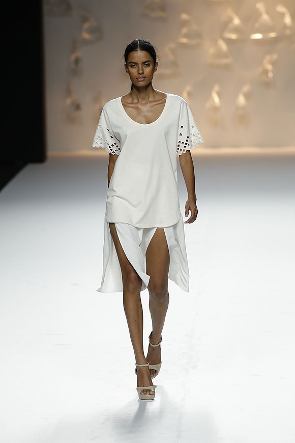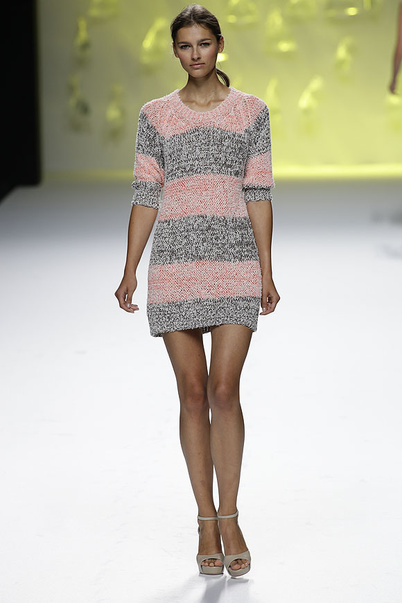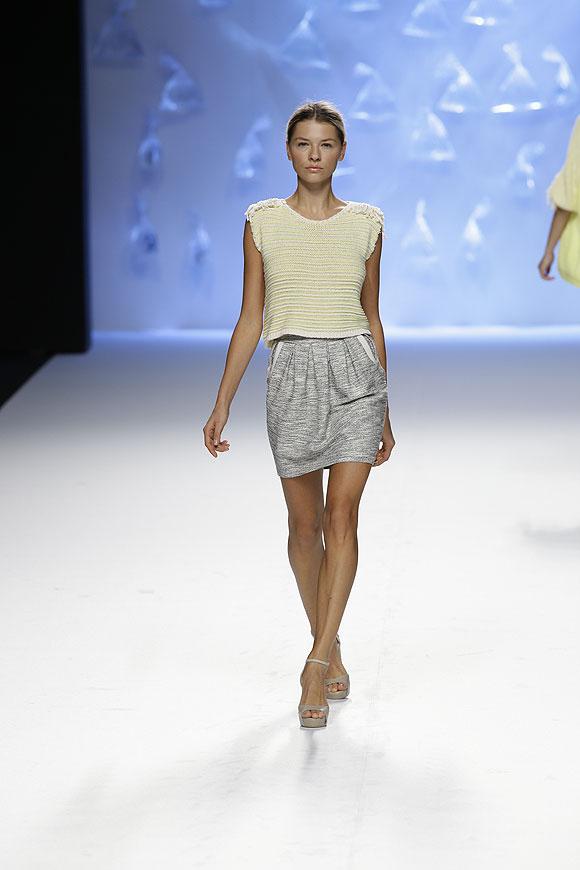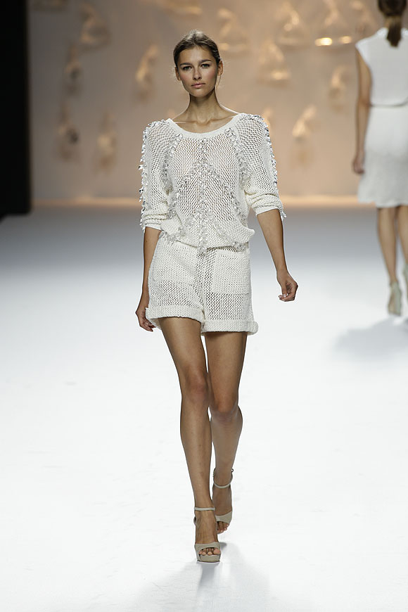 Sita Murt nos presenta una colección para la próxima primavera/verano 2012/2013 en el que el punto es el centro absoluto de ella, tejido que Sita domina a la perfección. Una colección con un denominador común en tema de cortes, sencillos y con grandes aberturas laterales, con acabados con mucho movimiento, ideales para dar un toque muy femenino, sencillo y perfecto a nuestro look de verano. A parte del punto podemos encontrar detalles de seda y aplicaciones en cristales. Los colores predominantes son los neutros pero podemos ver toques de amarillo, rosa o pink y confetti.
