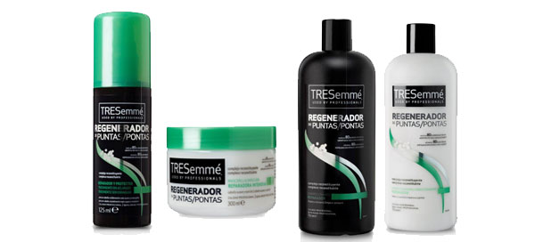 La gama Regenerador de Puntas de TRESemmé cuenta con un champú, acondicionador, mascarilla y un tratamiento reparador y protector que también podemos usarlo como toque de acabado.