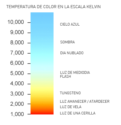 Osea que un blanco tiende a más azul cuando tiene mayor graduación de grados kelvin, y un blanco con tendencia más amarilla tendrá menos graduación de grados kelvin.