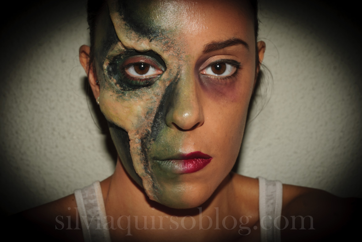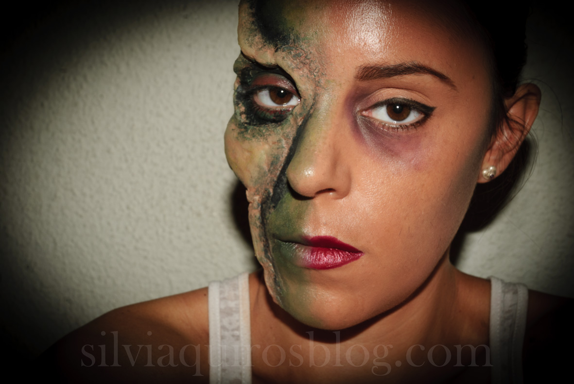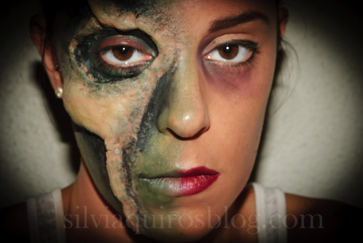 Maquillaje Halloween 6: Calavera media cara, Halloween Make-up 6: Half face skull, efectos especiales, special effects, Silvia Quirós