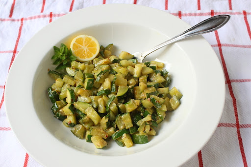 We are doing Cream Cheesy Cubed Zucchini with Lemon and Oregano