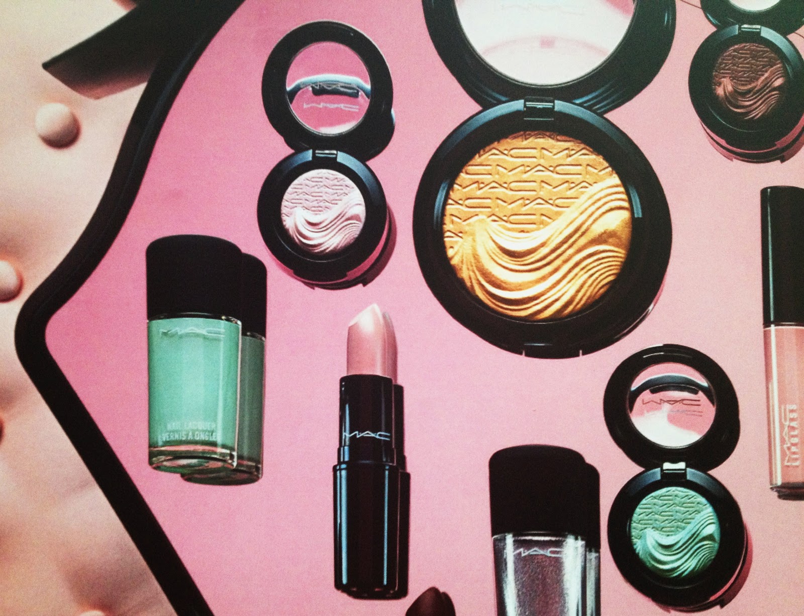 Extra dimension de Skinfinish y de Powder Blush, con una extra dimensión de eye shadows y la máscara false lashes y para el toque más festivo un lipglass en Pink Fade y una laca de uñas endless night.