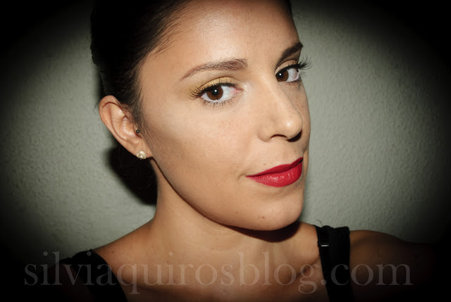 Hoy os voy a dar una opción con más glamour como maquillaje de Navidad, inspirado en la época dorada de Hollywood, con unos labios mate rojos como centro de atención y el resto del rostro bastante más suave, marcando los ojos con unas pestañas postizas y un sutil toque de dorado,