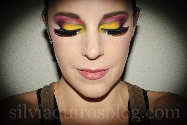 Para empezar os traigo un maquillaje super colorido con diamantes!!, bueno piedrecitas pero como si fueran diamantes!