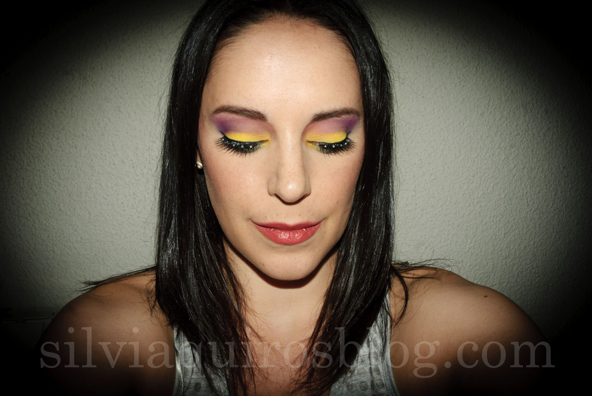 With pink, purple, yellow, green and black makeup look to give a touch of fun to our look!