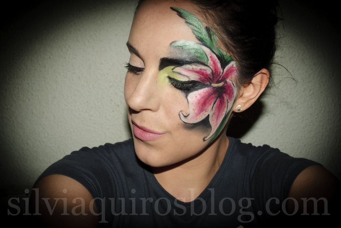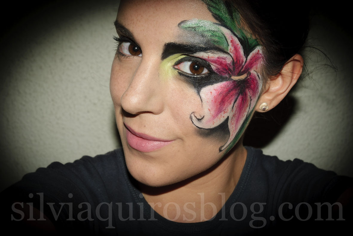 Today as a carnival makeup look we are doing a bit more details look and it needs a bit more work into it, we are going to recreate tropical flower that need a bit more attention and skills with the brushes, as other face designs that I´ve done before we are going to work with the 3D effects, with volumen and dark and light parts of the drawing to get the most real looking design, and if you do that you don´t need to get 100% perfect finish!