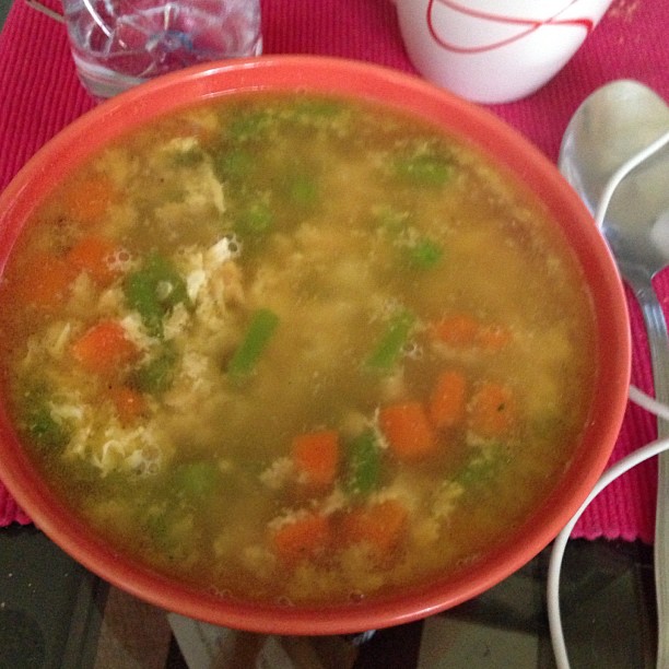 Ya sabéis que estos últimos días he estado resfriada, y bueno cuando una está resfriada no le apetece comer demasiado, así que hace tiempo que me inventé esta sopa para poder alimentarme sanamente, caliente y que no me sea difícil comer cuando estoy resfriada.