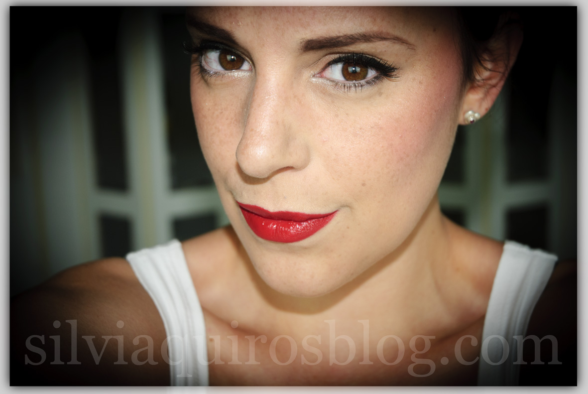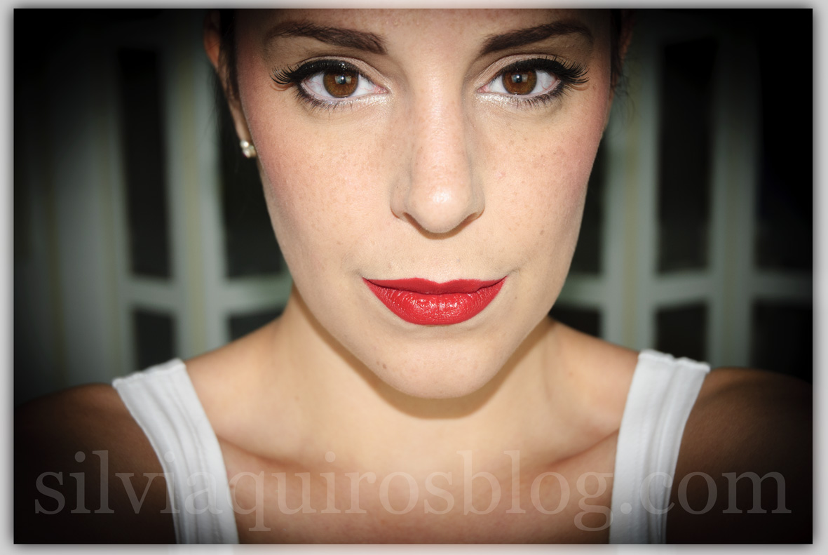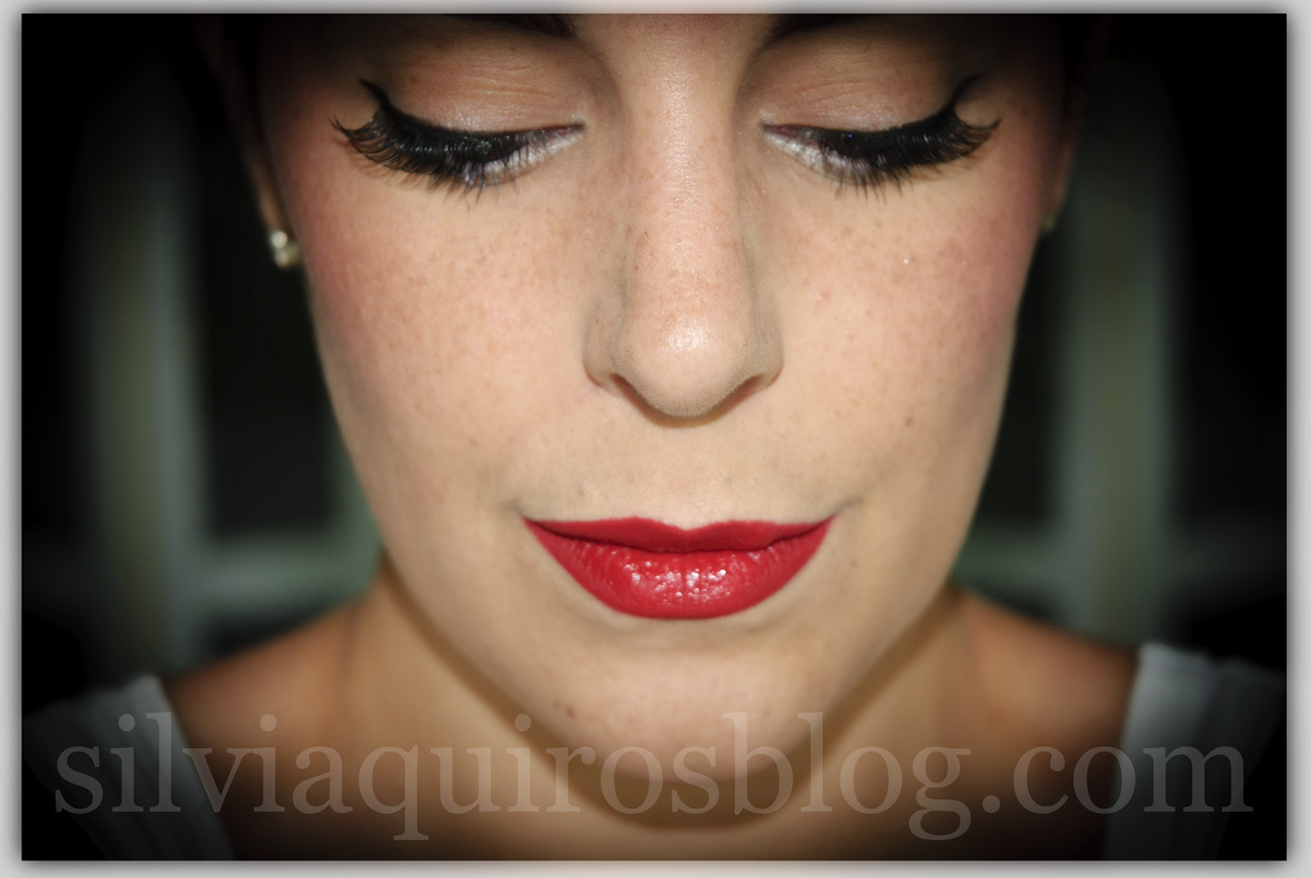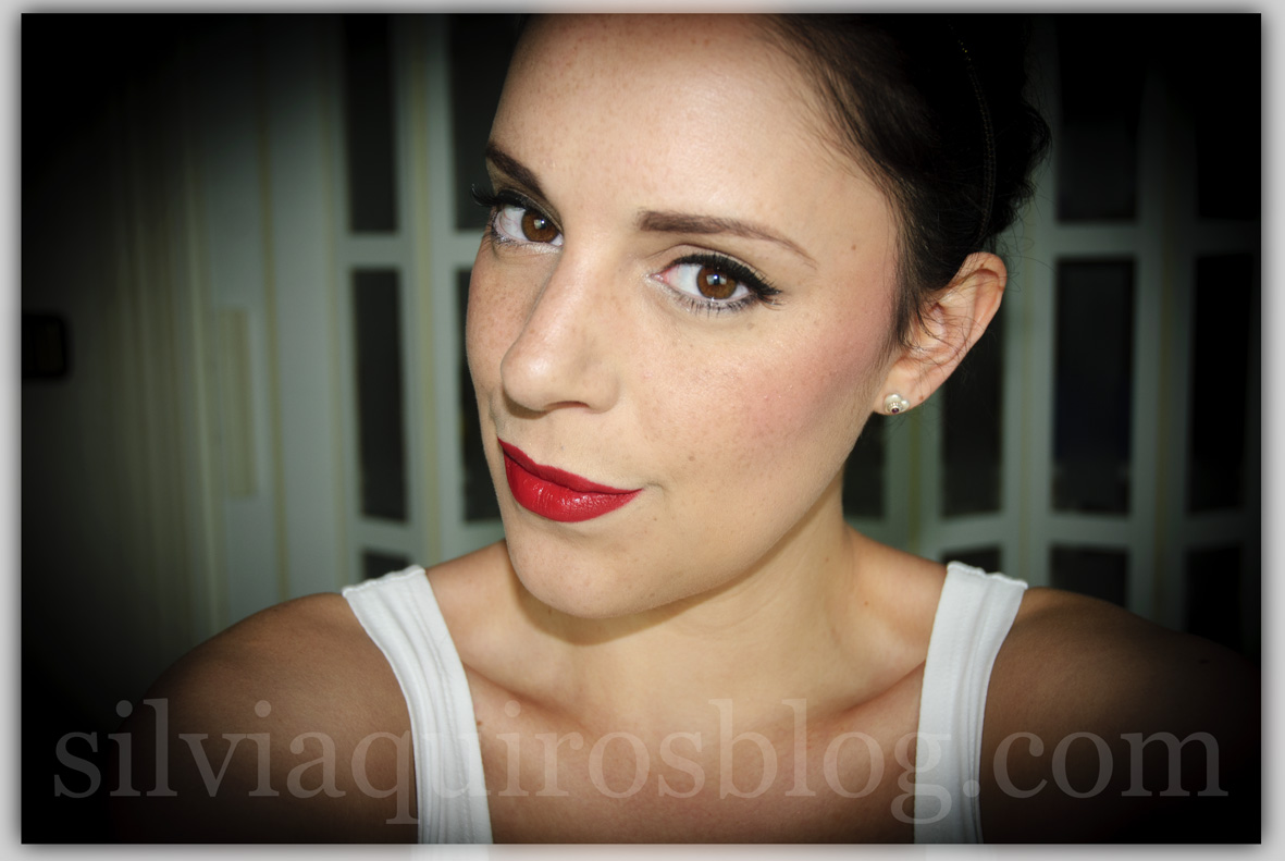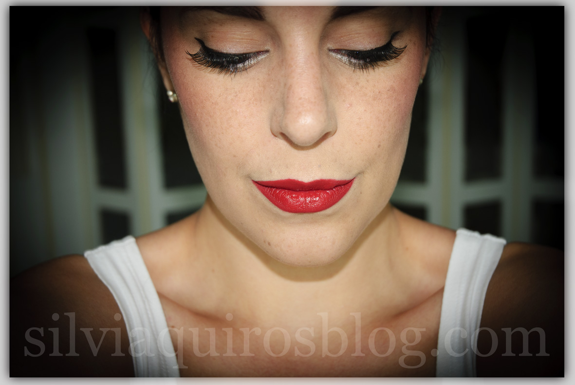 Un look con mucho glamour con labios rojos y eyeliner que con un par de toques cambiamos a un look más intenso en los ojos y los labios nude.