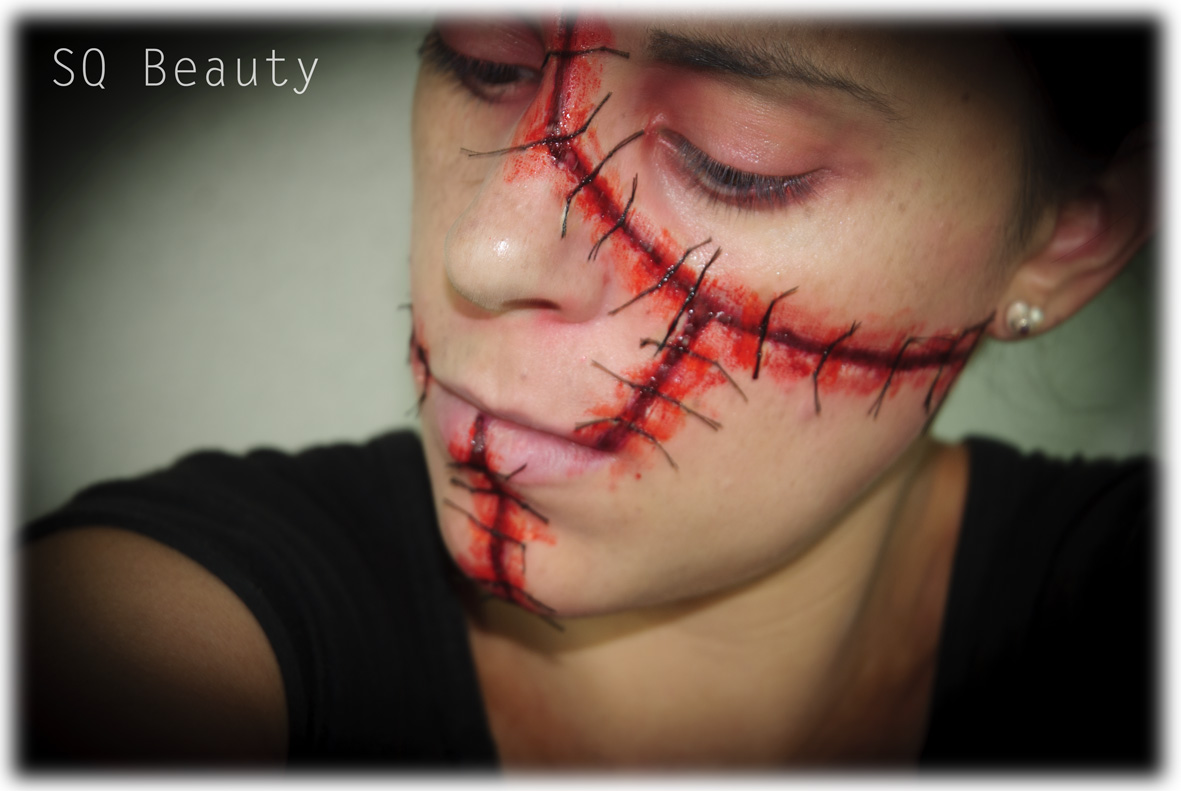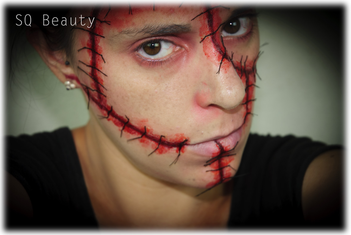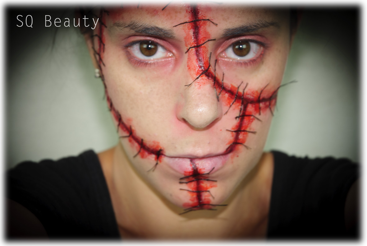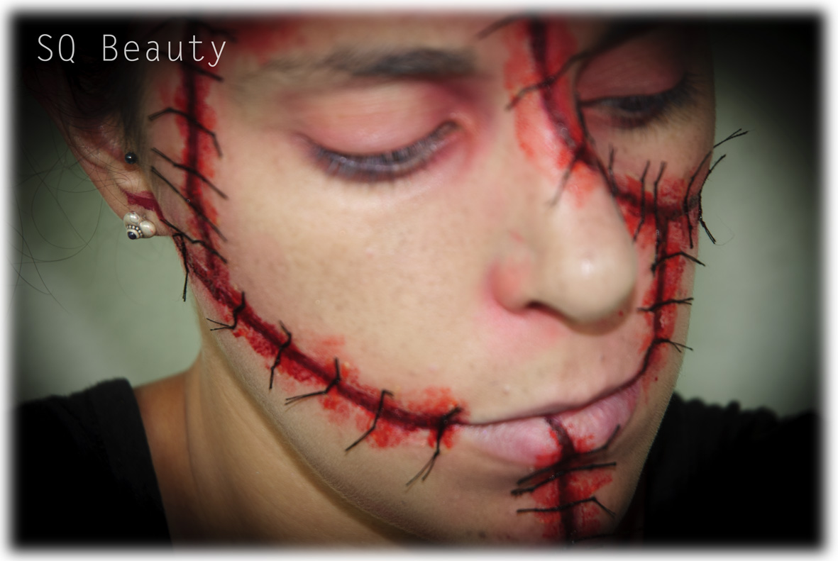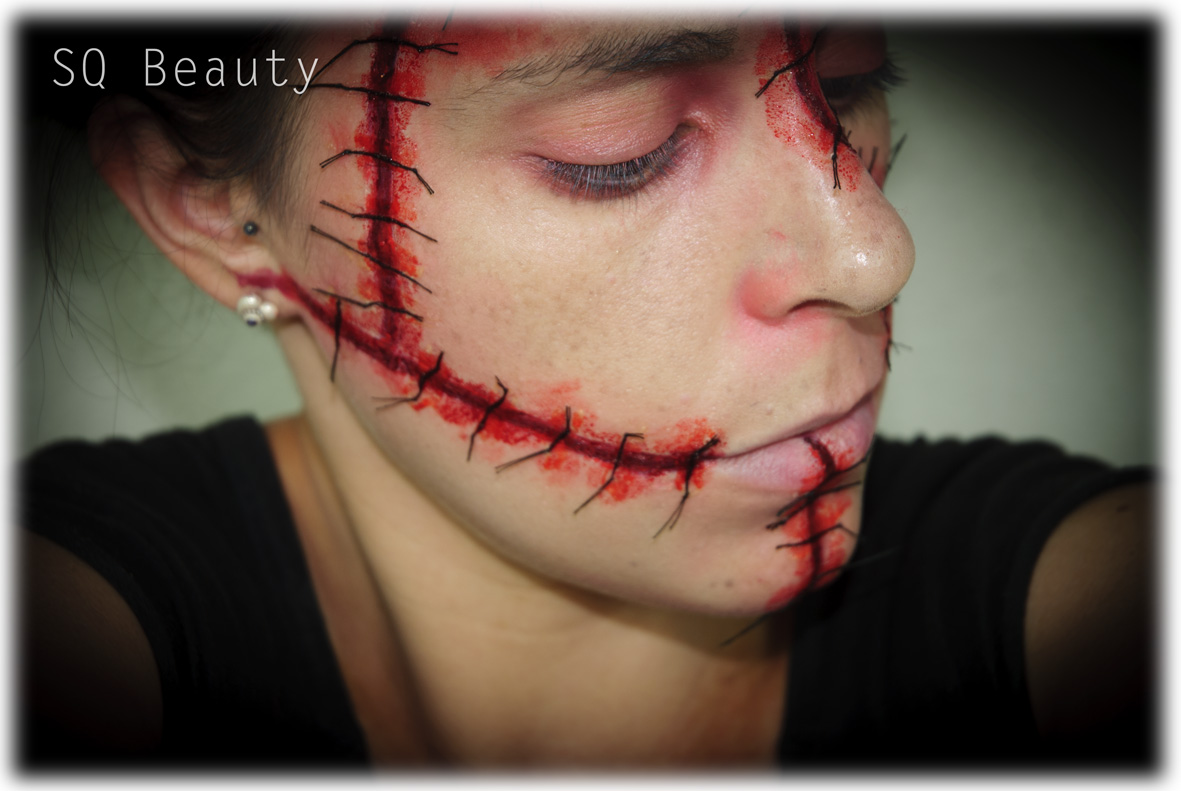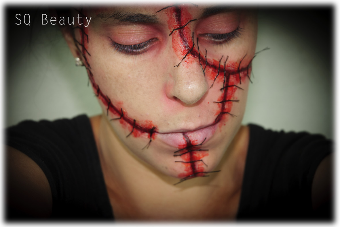 Cara cosida!! un efecto súper llamativo que se puede usar para muchos tipos de maquillajes, para fiestas, para cine, para usar la técnica en diferentes puntos del cuerpo, o para crear una herida cosida más real como en la frente etc.
