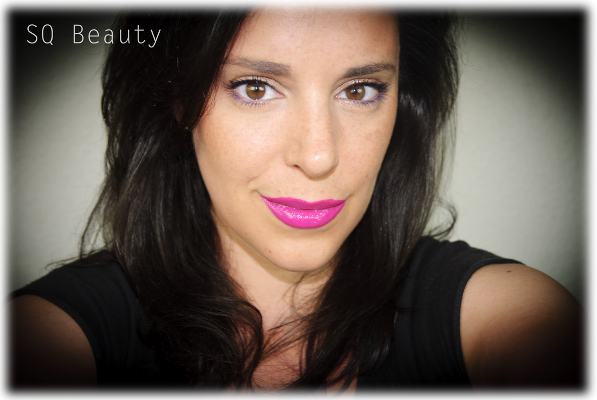 Con unos toques de color en los labios fucsia y en la máscara de pestañas de la línea inferior en morado y nos ojos super sutiles.