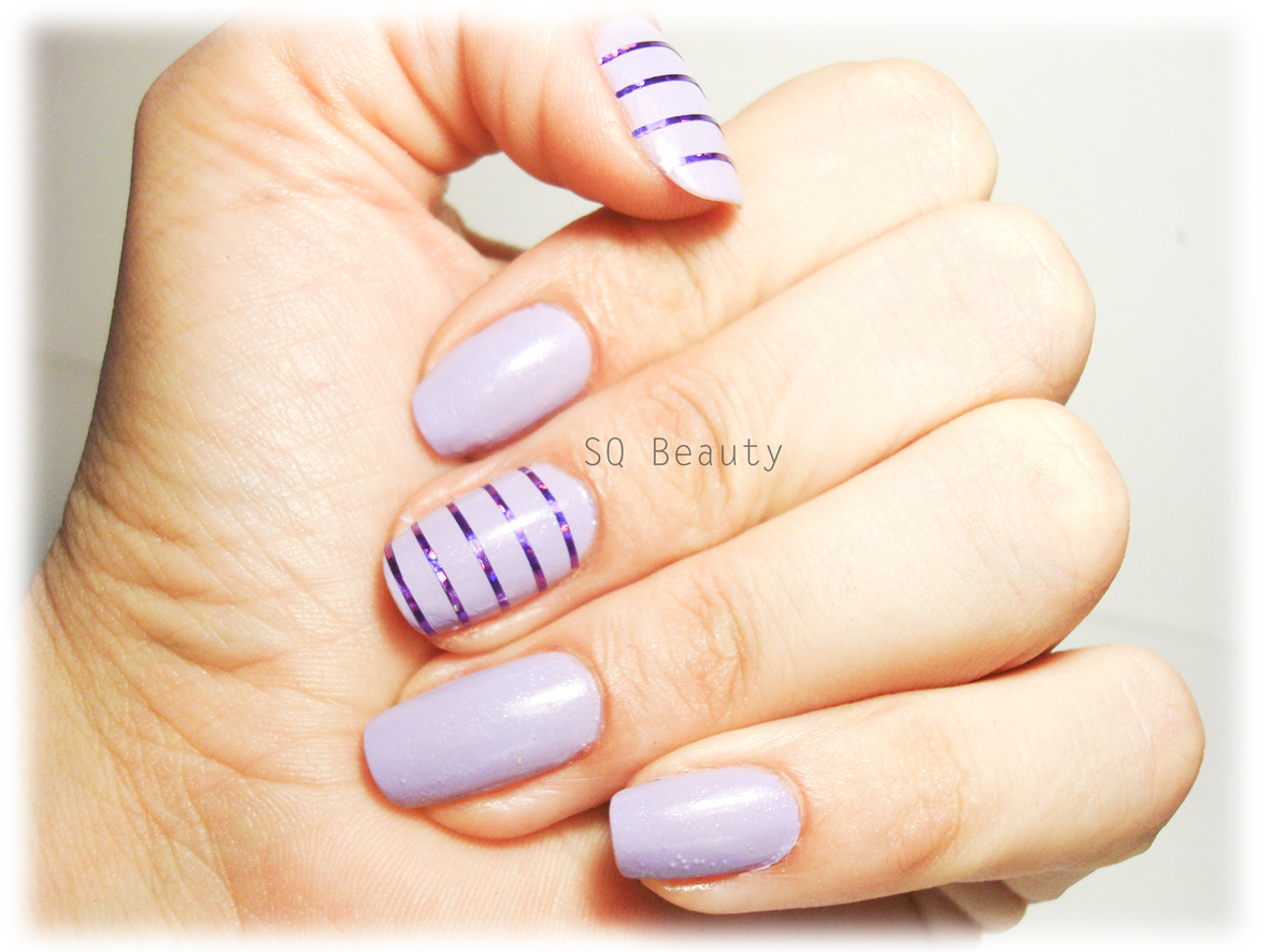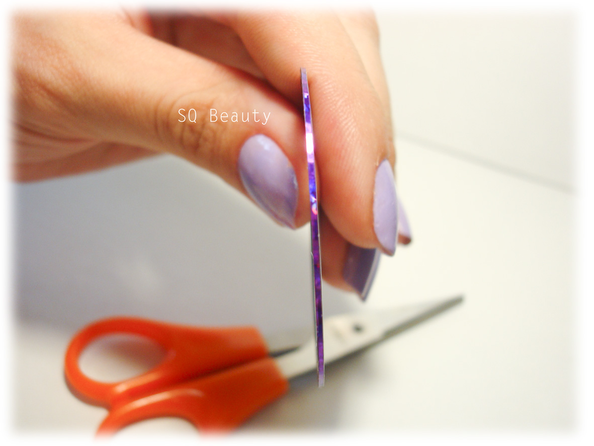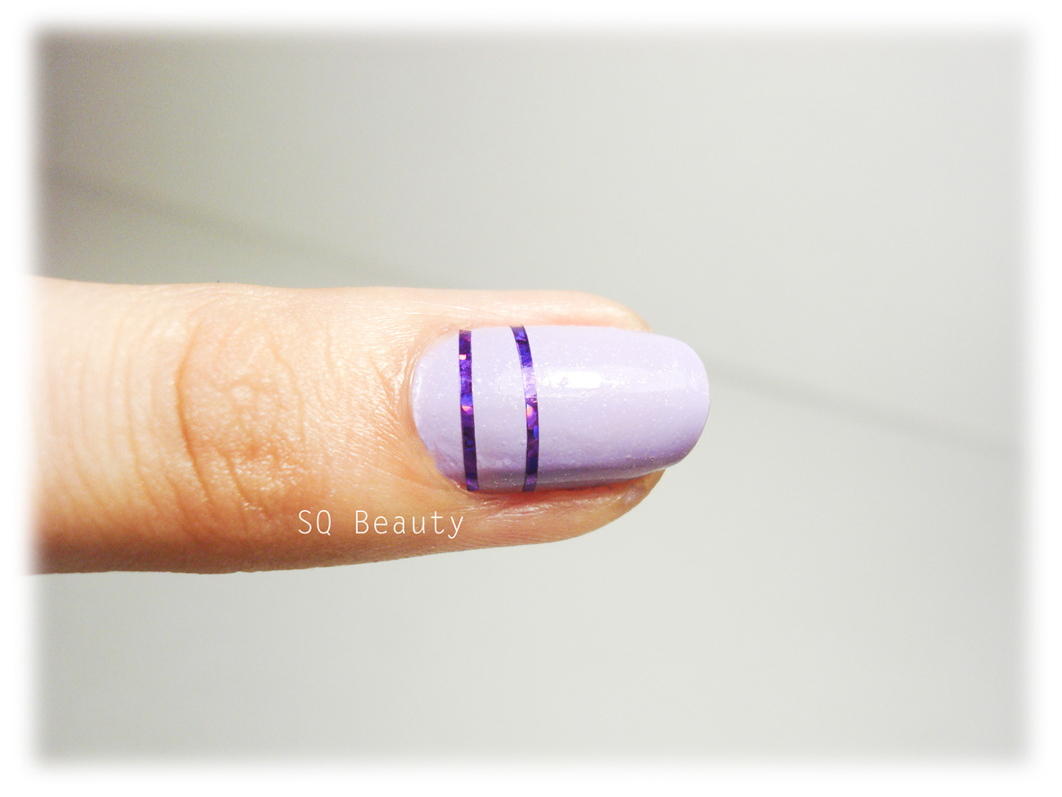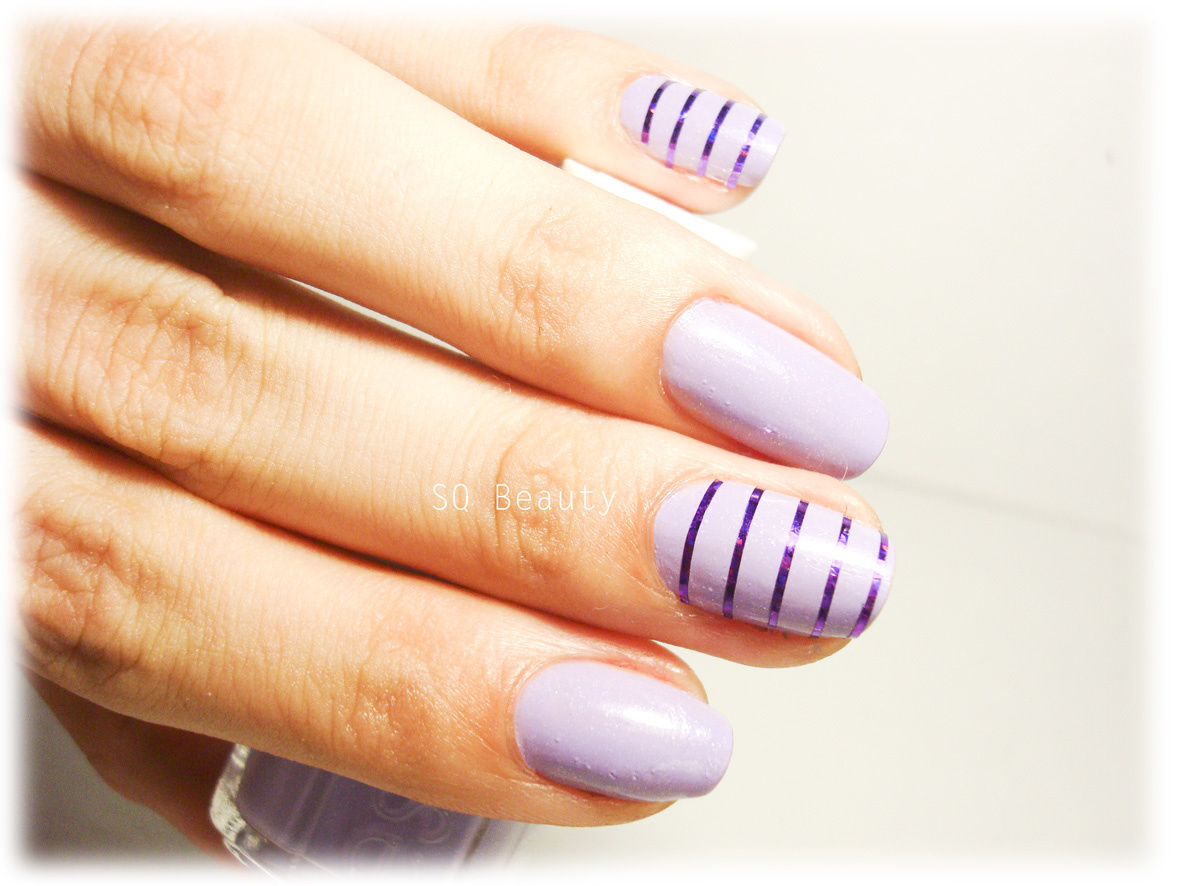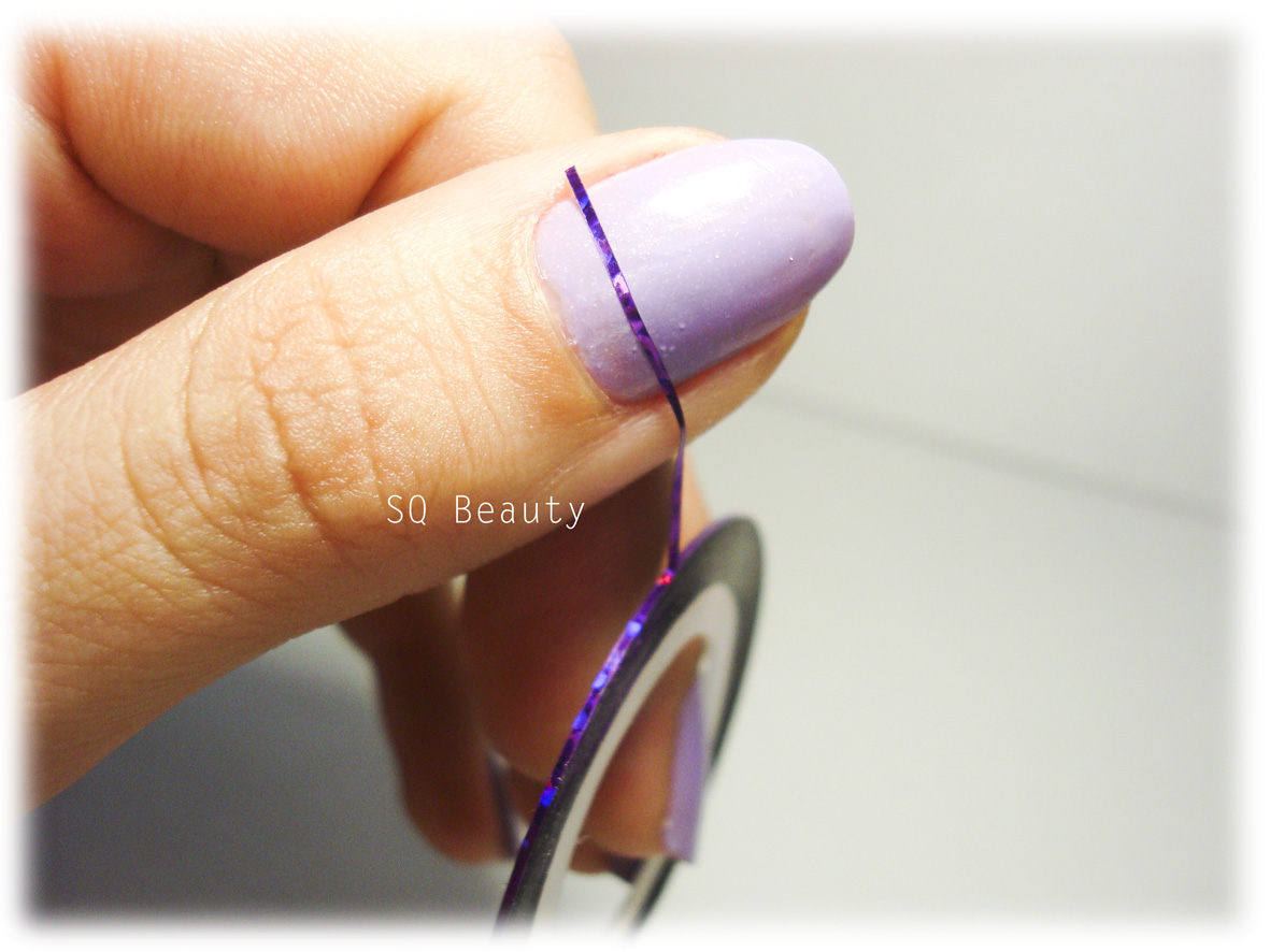 Una vez este completamente seco vamos a por el diseño, este tipo de cintas las venden en tiendas de decoración de uñas, en tiendas incluso de los chinos o como yo la he comprado por ebay, he elegido una moradita que pega con el lila de la base.
