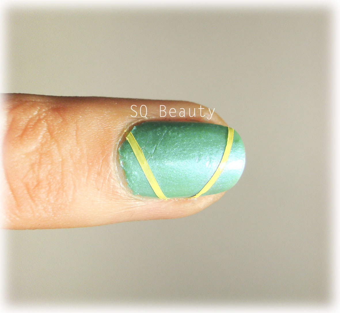 No tenéis que dejar el acabado de la cinta al borde de la uña, podéis dejar más cinta para que luego sea fácil poder retirar las cintas. Y como veis no importa de que color uséis la cinta.