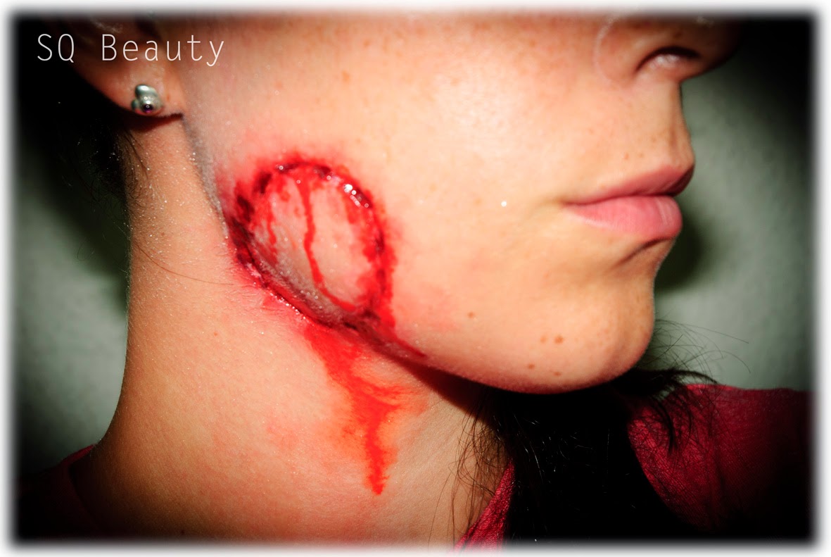El que hacemos hoy es el de un mordisco, nos ha mordido alguien, un zombie, un asesino etc… y lo acaba de hacer así que la sangre corre fluida por nuestro rostro! este efecto se puede hacer donde queráis y para darse ese aspecto de reciente spray un poco de agua en la herida y hará que la sangre corra!
