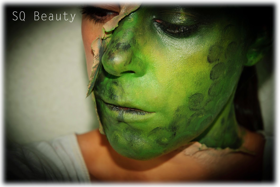He creado un efecto de piel pelada del rostro y que debajo se ve la verdadera piel de reptil, sin duda podéis añadir una lentilla de reptil e incluso unos colmillos.