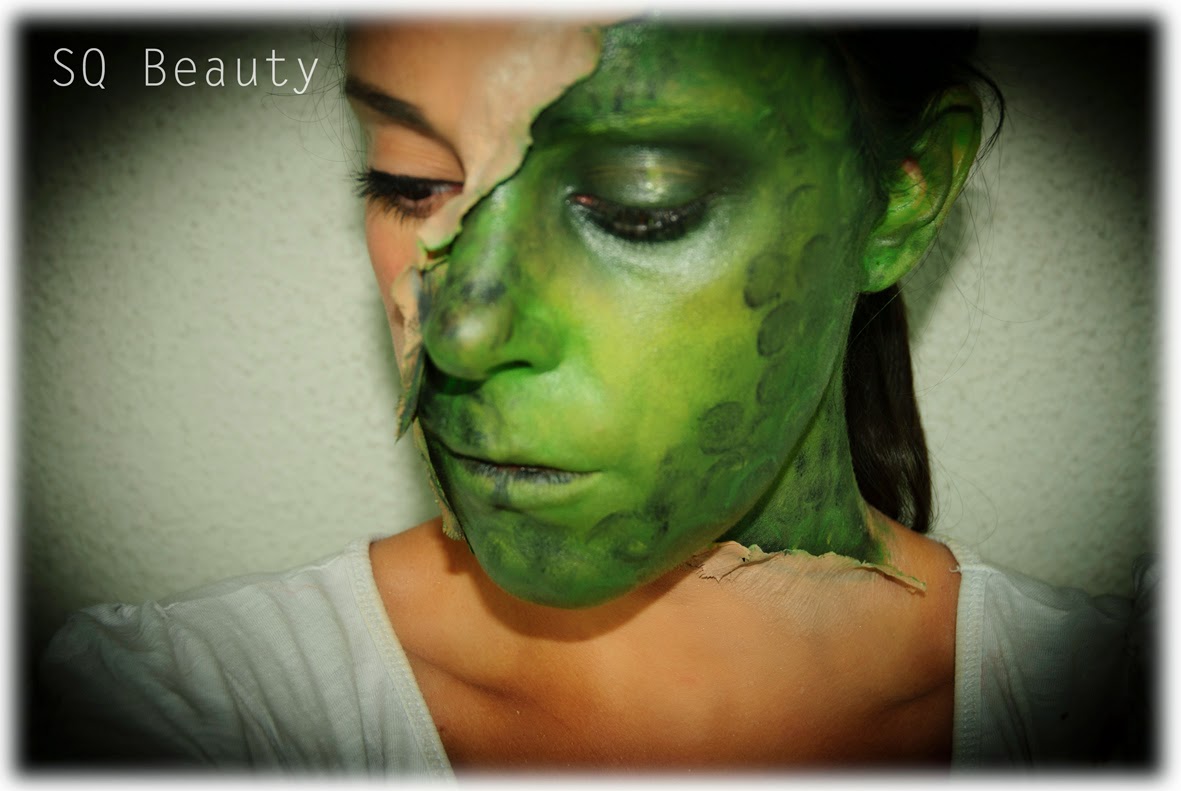 Me encanta esta época porque puedes dejar tu imaginación volar y crear cualquier tipo de maquillaje para celebrar Halloween!! y esta vez os traigo un maquillaje súper llamativo, es mitad cara de reptil, al estilo de V, creo que todos hemos visto esta serie alguna vez, y sino habéis oído hablar sobre ella, eran unos extraterrestres infiltrados en la tierra con aspecto de humanos pero que se quitaban la piel a tiras y debajo eran reptiles! pues algo así!