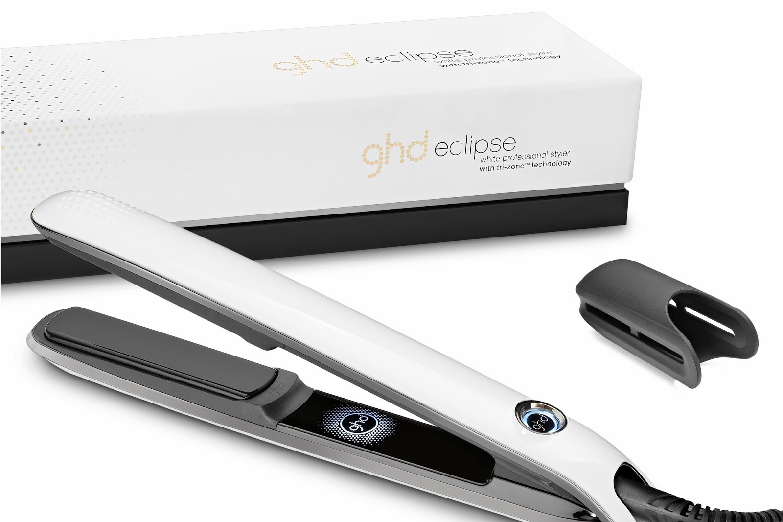 Ghd Eclipse White, la versión navideña de su ya icónica plancha de ghd, Eclipse white es un regalo espectacular, es una herramienta de alta calidad que ha creado un antes y un después en las planchas.