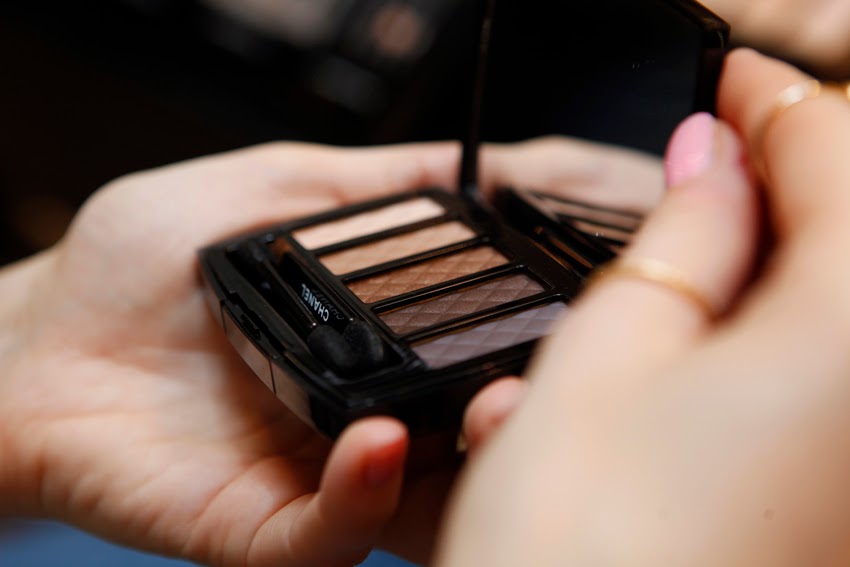 Miguel Ascate, maquillador de Chanel, nos fue enseñando paso a paso como hacer este look tan especial, desde los ojos, que tonos aplicar, como elegir la base, como aplicar los labios… aunque dicho desde su propia boca «no necesitáis mucha ayuda sois unas expertas»… jejeje creo que no sabía con quién estaba jugando!